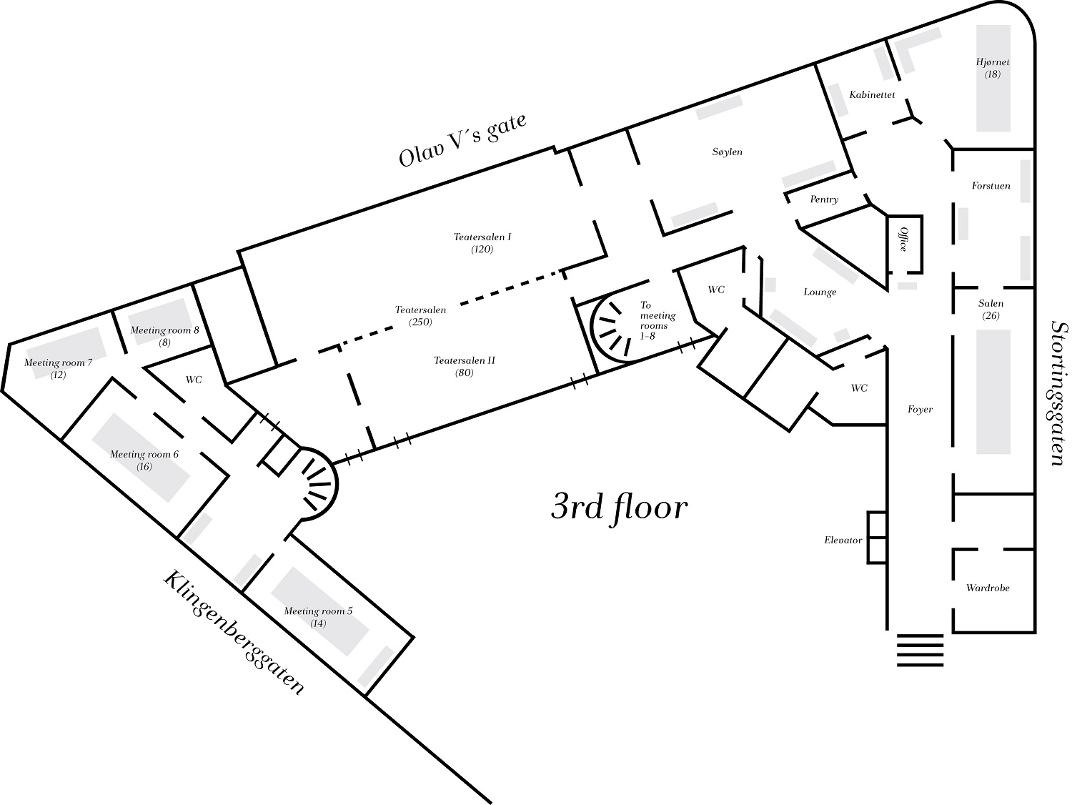 | Teatersalen | 250 | 110 | 62 | 60 | 180 | 300 | A + B | 213 | Marmor | 4,5 m |