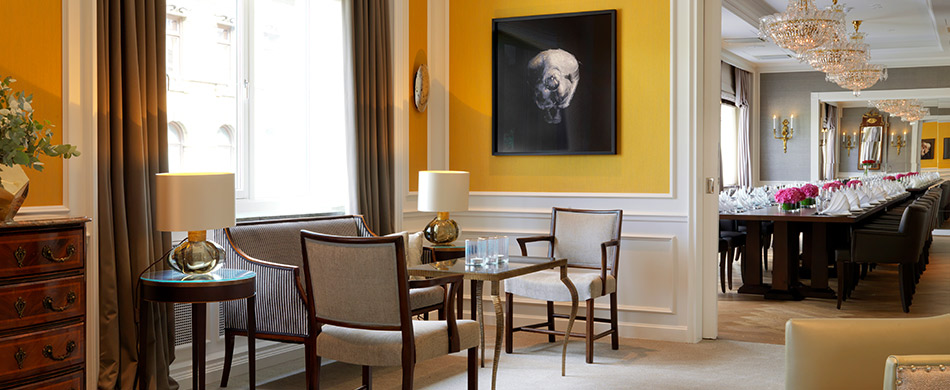 Moderne kunst står i fin harmoni til flotte lysekroner og antikke møbler. Her skal det tas viktige beslutninger, etableres gode relasjoner, oppfylles drømmer og skape uforglemmelige minner. Vårt velrenommerte kjøkken garanterer en smaksopplevelse som står i stil med omgivelsene. I tillegg til det romslige lokalet, har man også eksklusiv tilgang til en lekker lounge kalt Forstuen.